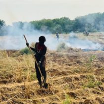 The following morning we drove south towards the Kenya border to visit the Dassanech people, a nomadic tribe. Life is hard for these people. It was striking to see the women working in the fields tilling the soil in this dusty, windswept area. Their huts were crude, consisting of rag weed and corrugated tin. Notably … this tribe practices genital mutilation, cutting off the clitoris of girls aged 12-13. Why do they do this? They want to rid the village of sexually active females. They make a big deal out of this practice, like bull jumping for men of the Hamer tribe. Some women wear the “vangari”, a metal and leather necklace/band worn only by the first wife.